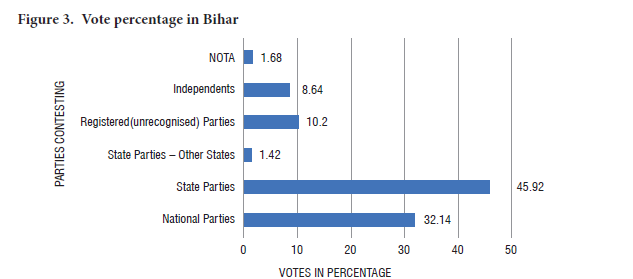 Bihar is a state with a total population (ORGCC, 2011) of 104,099,452 and is the third largest populous state of India with 243 constituencies. There were 6 national parties, 4 state parties, 7 state parties (other states), and 195 registered (unrecognised) parties apart from independent candidates contesting in Bihar. Over 70 million voters are eligible to cast their votes. As per the data provided by the Election Commission of India, Bihar has 72.9 million eligible voters this time around. In the 2015 elections, the state had 65,367 polling stations. The number now stands at 106,526, an increase of 62.96 per cent. 1,066 candidates are in the fray for the first phase of elections, 114 of them females (Mahesh, 2020). The Bihar election was held in three phases from October 28 to November 7 and the votes polled in the state assembly polls were counted on November 10. While Tamil Nadu and Kerala went to the polls in a single phase, there were three phases for Assam. West Bengal had assembly polls in eight phases.
