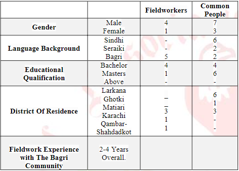 Patriarchal mindset is yet another challenge to data collection from the Bagri women. However, this challenge can also be met if researchers employ a literate Bagri woman to collect data on researchers’ behalf. It is usual that the Bagri women may like to express themselves to a female insider, rather than to a male outsider. In case, there is no such Bagri woman easily available, researchers can also convince a non-Bagri woman to collect data from the Bagri women. This is how the voice of the Bagri women might be recorded (see Table 4).
