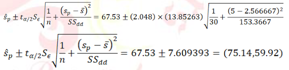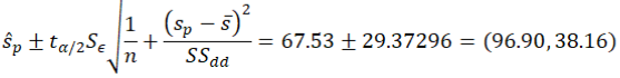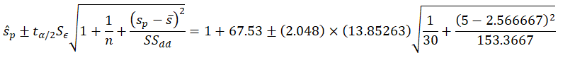According to this confidence interval, the true mean final test score for all students who miss class precisely five times over the semester is expected to be between 59.92 and 75.14. If a student misses exactly five classes during the semester, his final exam score is predicted to be in the interval with 95 percent certainty.