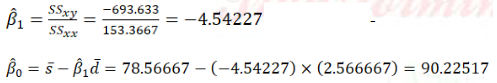 We start by determining the least squares regression line or predicted line, which is the line that best fits for the data. Its y- intercept and slope are given below: