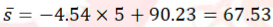 This is also our best estimate of a student's final exam grade if he/she is absent five times. The average final test score for all students with five absences has a 95% confidence interval of: