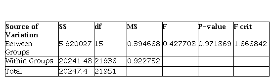 Interpretation: In single factor ANOVA, if the F value is bigger than the F-crit value than the null hypothesis (there is no significant difference in the daily return of selected major stock indices of the world) is rejected. And if not, the null hypothesis is accepted.