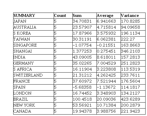 According to single factor analysis of variance there is no significant difference between the returns of selected major stock indices of the world.