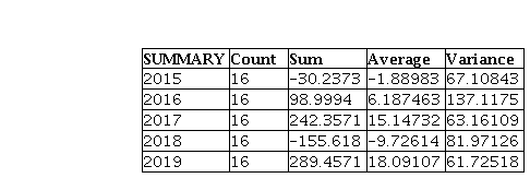 This means that there is significant difference in the total yearly returns from all stock indices.