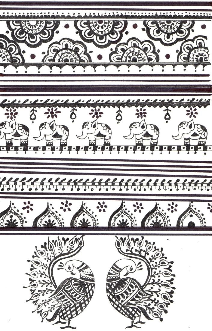 When a single portion of a pattern is repeated mirrorly on the central axis and results into a wonderful design is called central line design or mirrored design. These designs are developed by using various flowers, animals, leaves, geometrical shapes and forms etc.