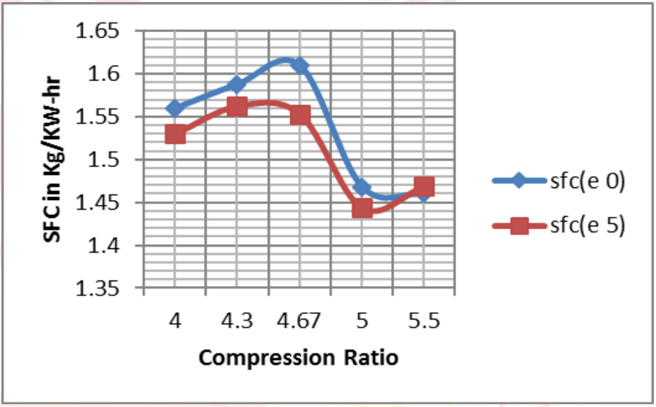 The plotted graph depicts that Compression Ratio for 5.5 is showing variation in the graph. Hence the Compression Ratio 4 and 4.67 satisfies with the standard condition