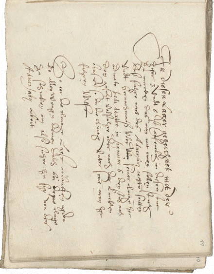 The author’s use of “virilia” is one of many examples of loanwords, code-mixing, and code-switching present in the manuscript. Apart from the Latin “virilia” or “adversaries” (Engl.: opponent), the latter of which appears seventeen times for the German “widderpart” (four appearances) or “widdersagger” (two appearances), the writer uses Latin loanwords like “observiren” (Engl.: to observe) and “Obseruation”. A real code-switching from German to Latin always happens when the writer wants to describe geometrical circumstances. Two examples are presented below.14