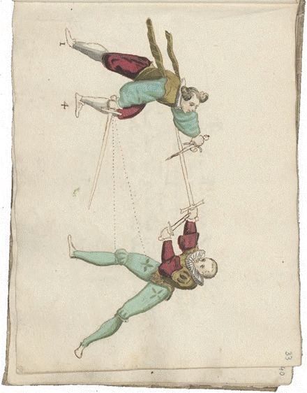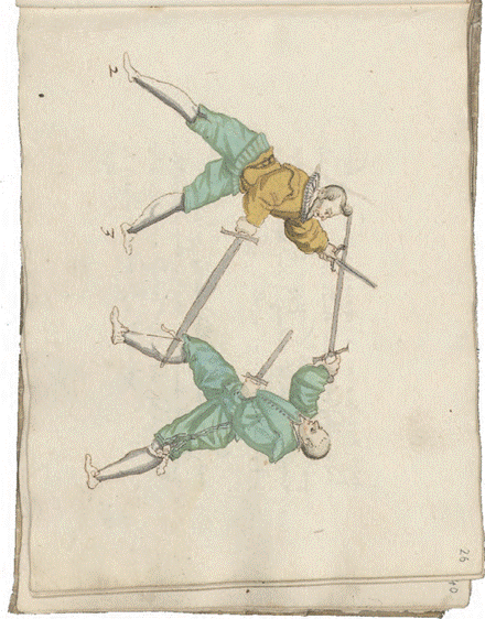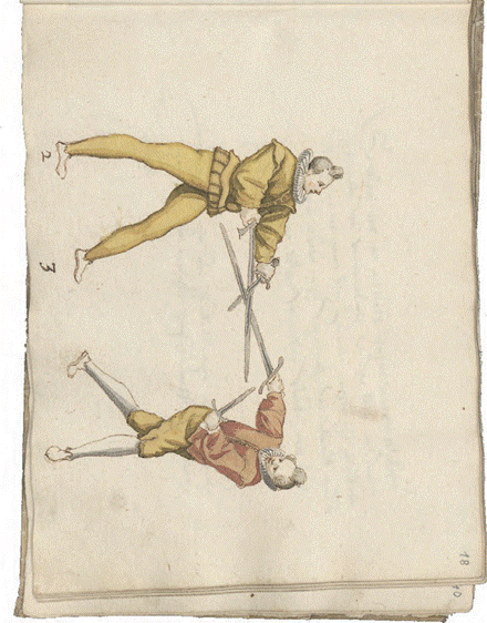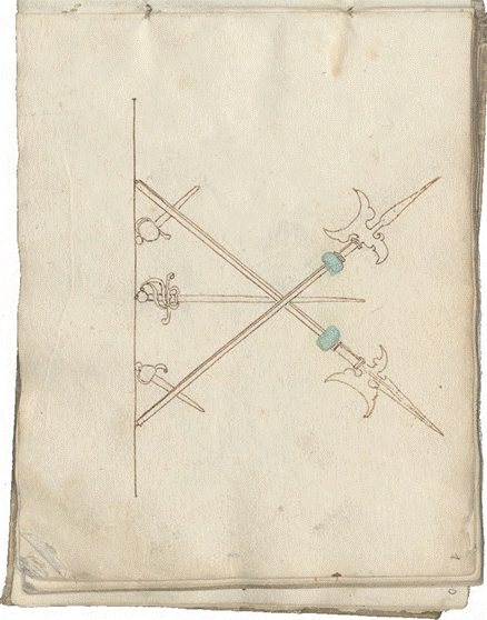 Keywords: anonymous fight book, sixteenth century, rapier and dagger, code switching, diagram sketch on footwork..
