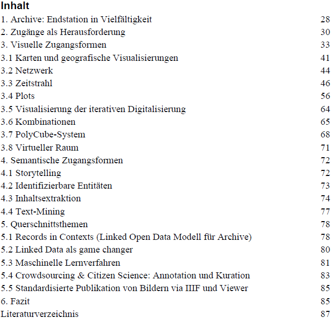 Mit der vorliegenden Studie wird aufgezeigt, dass für Sammlungen und Dokumente eine Vielzahl von visuellen und semantischen Zugangsformen bestehen, die neue und