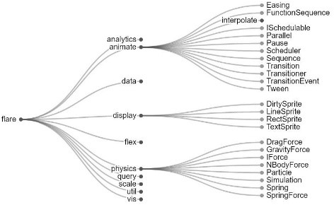 Untenstehend sollen deshalb einige der grundlegenden Visualisierungstypen und Gestaltungsmittel aufgeführt werden, die in den anschliessend besprochenen Beispielen in verschiedensten Kombinationen wiederzufinden sind. Für die Grundtypen von Diagrammen halten wir uns an die von Johanna Drucker aufgestellte Typologie,13 ergänzen diese aber mit weiteren Visualisierungstypen und greifen zur Illustration auf Abbildungsbeispiele von D3.js zurück, einer verbreiteten JavaScript-Bibliothek, die für statische oder interaktive Grafiken im Web eingesetzt wird.14 Da die einzelnen Visualisierungstypen unterschiedliche Werte (z. B. numerische Werte, Zeitverläufe usw.) voraussetzen, sind diese nur für bestimmte Daten geeignet, oder die Daten müssen erst aufbereitet werden. Eine Darstellung vermag zudem oft nur gewisse Aspekte aufzuzeigen, die in den Daten vorhanden sind.