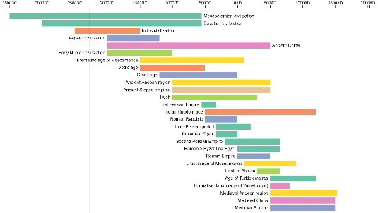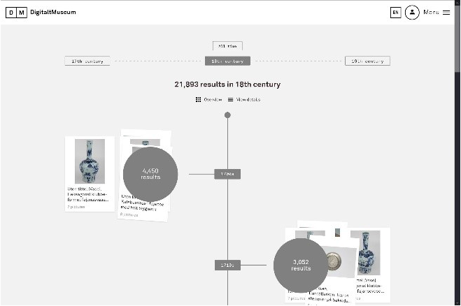 Historische Dokumente und Artefakte sind häufig mit einem bestimmten Datum oder Zeitraum verbunden. Bei einem Fokus auf die zeitliche Dimension, die in kulturellen Daten enthalten ist, bietet sich als Darstellungsform ein Zugang über einen Zeitstrahl an. In der 2016 erschienenen Dissertation Visualising Cultural Data: