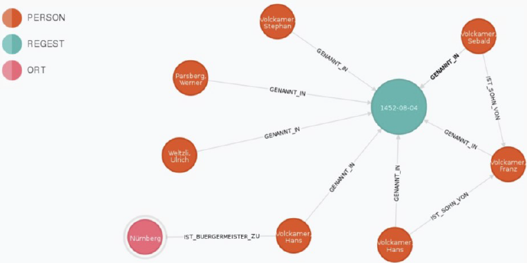 Als Beispiel für diese Herausforderung gilt die Erkennung von Personenund Ortsnamen sowie Daten in einem Text. Damit wird nachvollziehbar wer, welche Orte und welche Datumsangaben in einem Text genannt werden. Diese Informationen können nachfolgend für die Erstellung von Registern oder für die Visualisierung von Zusammenhängen (wer tritt wann wo mit wem auf) genutzt werden.