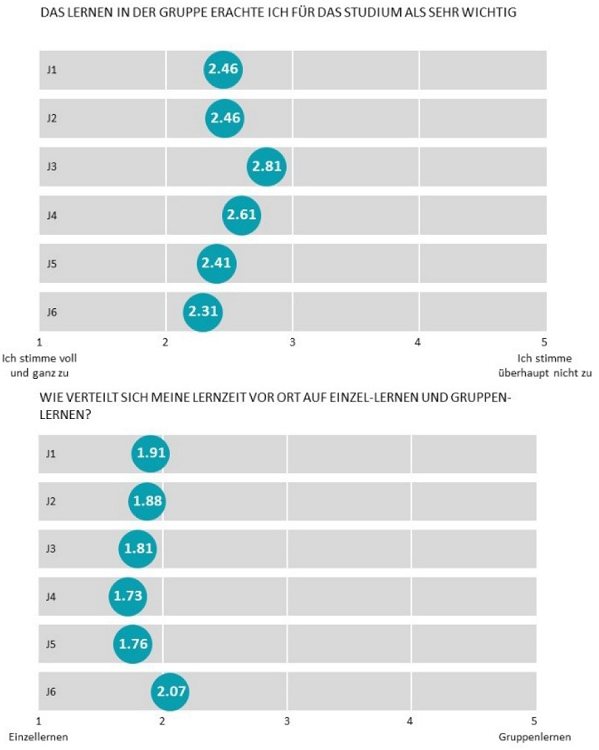 Weshalb ist der Anteil des Lernens in der Gruppe unter den Medizinstudierenden so gering? In den Fokusgruppen wurde dazu gesagt, dass am Ende «jeder den Stoff im eigenen Kopf haben muss» und das Gruppenlernen erst Sinn mache, wenn sich alle schon Wissen angeeignet hätten, weil sonst «die Blinden von den Blinden geführt werden.»