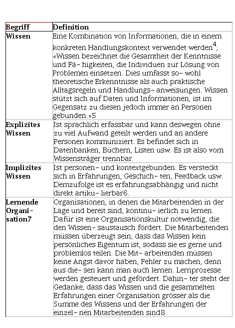 Hier werden kurz die wichtigsten Begriffe im Bereich des Wissensmanagements dargestellt: