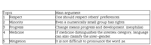The comments on both discourse positions employ a set of interrelated argumentation. In what follows, the map of arguments posted to discuss the importance of introducing the GNP ze will be delineated (RQ2). First the arguments in favour of the use of the neologistic pronoun will be charted then the arguments against its application will follow. Where applicable, it is also uncovered what the argument entails but the comments fail to identify.
