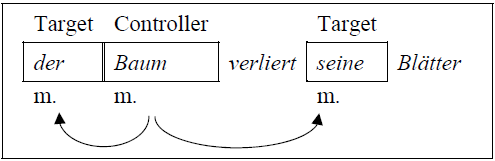 Genuskongruenz wird in der Regel so verstanden, dass ein kongruenzauslösendes Element (Controller) sein inhärentes Genusmerkmal auf ein weiteres, an sich genusloses Element (Target) überträgt (cf. Corbett 2006: 4), cf. Abbildung 1.