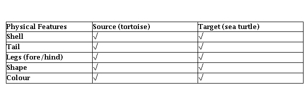 It is noted from Table 6 that some local features are perceived to name the sea turtle. This metaphor is based on the resemblance in shape and/or colour between the sea turtle and the tortoise on land. Also, both underlying creatures have shells, tails, and legs (hind and fore). So, in the eyes of the Mfantse people, the sea turtle is a tortoise in the sea because it looks like one. In an actual sense, both creatures look alike but they are different. The structure of one domain (sea turtle) is mapped onto the structure of another domain (tortoise). Let us consider in Table 7, the metaphoric mapping between a snail and a sea snail.