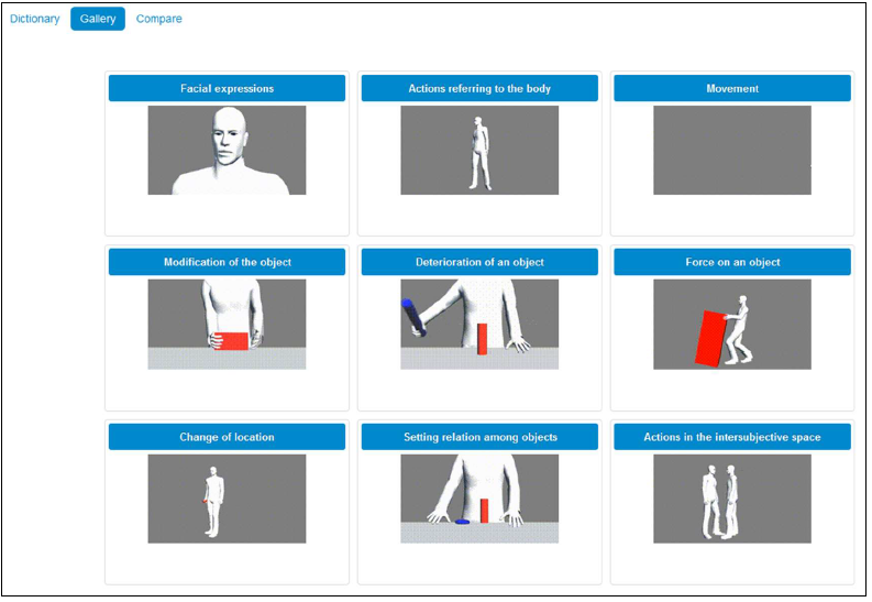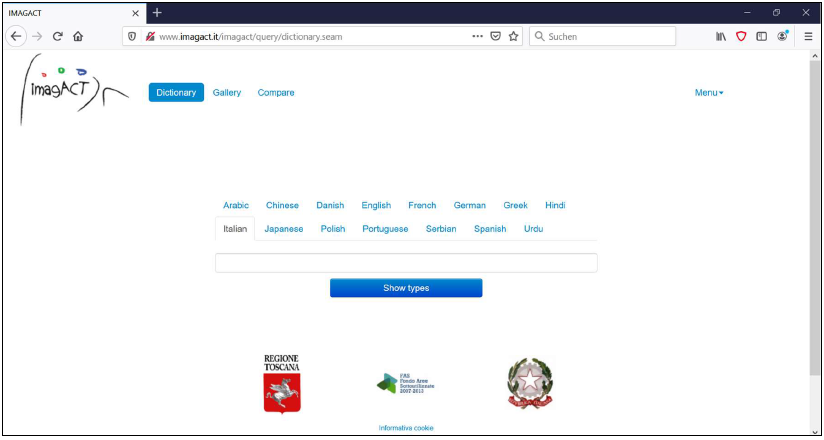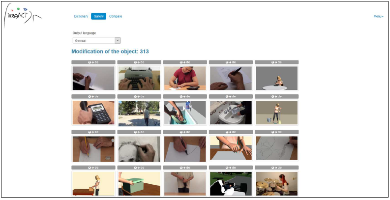 Das Teilprojekt zur Erweiterung der Datenbank heißt IMAGACT4ALL. Die hieraus entstandene erweiterte Version von IMAGACT ist frei im Internet zugänglich (siehe Abbildung 2). Zugleich stehen die eingefügten Daten im Hintergrund auf Anfrage für linguistische Analysen bereit.