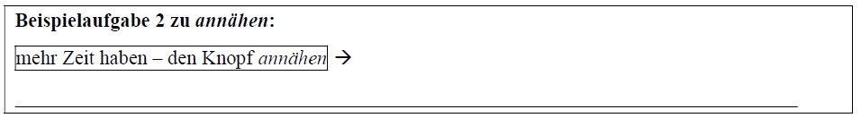 Um dem Status der verschiedenen Klammerbildungen gerecht zu werden, ist es allerdings nicht nur wichtig, zwischen der periphrastischen Konjunktiv-II-Klammer (Konjugation des Verbs) und der Klammerbildung beim Partikelverb (Wortbildung, Distanzstellung) zu unterscheiden, sondern auch, die semantisch-lexikalischen Eigenschaften der Partikelverben zu berücksichtigen. So stellt sich bei Partikelverben die Frage, ob durch die Linkserweiterung auch tat- sächlich die Bedeutung modifiziert wird (z. B., ziehen – einziehen) oder nicht (z. B., borgen – ausborgen). In solchen Fällen, in denen die Linkserweiterung mithilfe der Partikel keinen Be- deutungsunterschied hervorruft, ist die Gefahr einer fehlerhaften (i. e. zu revidierenden) syn- taktischen und semantischen Prozessierung geringer. Das hat zur Folge, dass die Unterschei- dung zwischen Kontakt- und Distanzstellung hier weniger relevant sein dürfte als bei solchen Verben, bei denen es einen Bedeutungsunterschied gibt (siehe Kapitel 2.2).