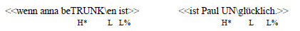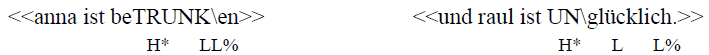 ein tiefer Akzentton (L*) zeigt hingegen an, dass die Information nicht dem geteilten Wissen von Sprecher und Hörer hinzugefügt werden soll, weil sie im Diskurskontext bereits präsent ist.
