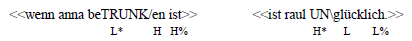 Ein weiteres Kriterium, das für eine Zusammenwirkung von Syntax und Konturwahl spricht, ist auch die Möglichkeit, syntaktische Ambiguitäten allein durch die Wahl der Intonationskontur aufzulösen (cf. Féry 1993: 140f.):
