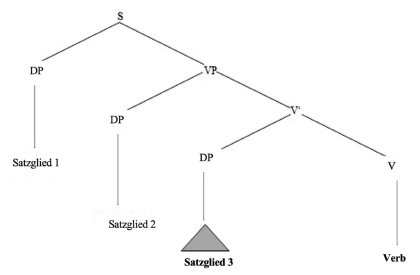Diese drei Bedingungen können auf verschiedene Art und Weise miteinander interagieren: Solange die dritte Bedingung stimmt, können entweder die erste oder die zweite verletzt werden; umgekehrt kann die letzte nur dann verletzt werden, wenn die beiden ersten Bedingungen stimmen. Mit anderen Worten: Wenn das Dativobjekt dem Akkusativobjekt vorangeht, dann ist jede Fokusund Definitheitsverteilung zwischen den Objekten möglich: