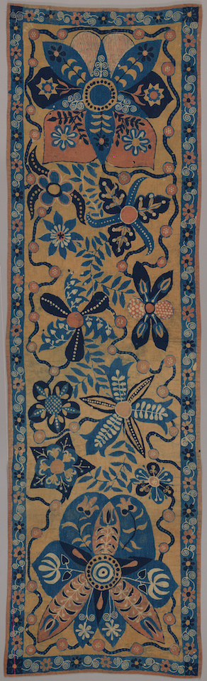 Les batiks « javano-cracoviens » sont un autre produit phare des Ateliers (Niezwykłe spotkania). Fabriqués par des jeunes apprentis de l’atelier de batik, fondé par Antoni Buszek (1883-1954) sur le modèle de l’Atelier Martine de Paul Poiret, ils puisent dans le répertoire des motifs organiques, d’origine orientale ou indigène, en simplifiant la composition, régie toujours par les lois de la symétrie, appropriée à l’art naïf (fig. 9). Leur forme et leur popularité sont dues à la conjonction de plusieurs facteurs : l’intérêt pour les tissus javanais et la présence de batiks dans la collection de Jasieński et celle du Musée technologique et industriel, la tradition des costumes polonais avec leurs ceintures décoratives, devenues à leurs tours l’objet de collection, et enfin, la mode de l’exotisme et le coût très abordable des châles et autres tissus ou objets en bois décorés à l’aide de cette technique.