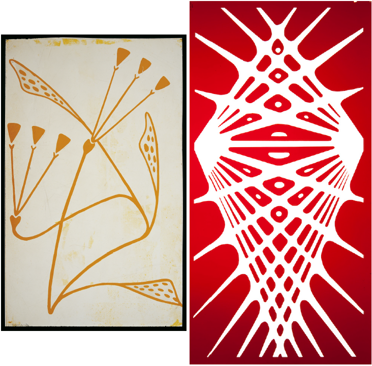Ces éléments de forme sont toujours en rapport avec la matière dans laquelle l’ornement a été travaillé, et avec l’outil qui a servi à l’exécuter, de sorte qu’ils trahissent régulièrement leur origine matérielle, autrement dit technique ; par contre, le rythme qui décide de leur groupement émane d’une source immatérielle (L’Ornementation 3).