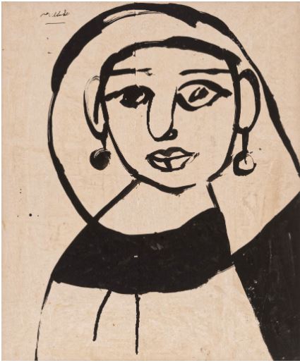 From the palm trees of Palermo to those of Cairo, sacred figures mingle with secular figures. The salt and ash of the Arab street rain down on conches filled with holy water and candles burning in the Christian chapel. The Muslim shrine recalls Italy, a country he had known under another name and under other meridians, the kingdom of Sicily, a land with a perfectly composite identity, born of the rapid succession of Byzantines, Arabs and Normans between the 10th and 12th centuries. From the palm trees of Palermo to those of Cairo, the painter discovered a multiple identity, the product of a nomadic, multilingual, mixed civilization. This experience, both imaginary and real, is reflected in his love for the fresco – Abdalla has all the qualities of a fresco painter, even though he painted on paper throughout his life. In the same year as the trip to Palermo, the Danish art critic Ib Paulsen immediately detected signs of an agitator and a primitivist universalist in Abdalla: “The strength of Abdalla’s works is to plunge consciousness through centuries of evolution, going back to cave paintings, beyond borders, around the world, as far as the Babylonian cults, all the while retaining a firm desire to transform images according to the temperament that alters them, whether it is Chinese, Egyptian, Aztec, Sumerian, or that of Abdalla, Klee, Picasso, Munch or Gauguin . . . [Abdalla] is a flame, a storm in the burning desert. We have much to learn from him.”15
