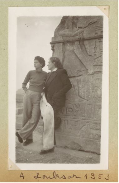 Burchard trouve rapidement sa place dans le milieu de l’art égyptien, cosmopolite et polyglotte. Les Égyptien·ne·s y côtoient en effet des artistes d’origine étrangère – notamment italienne, arménienne, française et britannique – de passage ou bien installé·e·s depuis plusieurs générations. Les actualités de Burchard sont largement relayées par la presse francophone, et plus particulièrement par Le Journal Suisse d’Égypte qui lui consacre régulièrement ses colonnes artistiques, la mettant parfois en concurrence avec l’une de ses compatriotes native du Caire, Margo Veillon (1907-2003). Tout comme Veillon, et seulement deux ans après son arrivée dans le pays, Burchard figure parmi les Femmes Peintres d’Égypte mises à l’honneur dans le petit livre d’Aimé Azar publié en 195310. « Burchard a compris l’Égypte ; elle a pénétré jusqu’au fond de ce peuple qui cultive avec amour les traditions et qui ne craint pas d’affronter la vie moderne », écrit le critique levantin. – Lui-même étranger sur le sol égyptien, Azar est un autre exemple de la propension du paysage artistique et intellectuel de l’Égypte de l’époque à intégrer des identités culturelles multiples. La reconnaissance locale de Burchard est en partie liée à sa capacité à faire siennes les thématiques privilégiées de la peinture moderne égyptienne. À l’instar de ses collègues autochtones, elle arpente les campagnes, peignant les paysages ruraux et les paysan·ne·s au travail. Elle emporte à plusieurs reprises son chevalet en Haute-Égypte, notamment en 1953 lorsqu’elle part à la découverte des sites antiques de Louxor (fig. 1) et des ateliers de tapisserie de Nagada en compagnie de la peintresse Inji Efflatoun (1924-1989) qui y réalise le tableau Tisserands de Nagada (1953), exposé à la Biennale de São Paulo à la fin de l’année11.