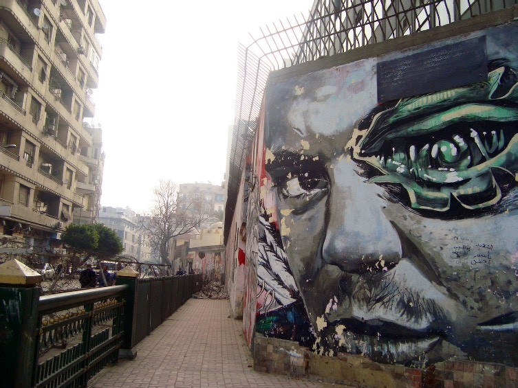 Selon lui, si la police est « ok » avec ce graffiti, c’est que sa pérennisation au-delà du contexte spatio-temporel de sa création lui fait perdre sa dimension contestataire. La rue Mohamed Mahmoud n’est plus associée selon lui à un espace révolutionnaire, mais à un espace repris par le pouvoir en raison de sa proximité avec la place Tahrir, particulièrement surveillée par les forces de l’ordre.