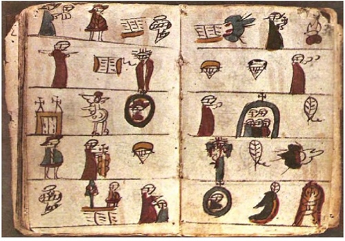 Los códices nahuas contienen una escritura pictográfica-logográfica: cada signo representa un objeto definido, un símbolo o una raíz (Rossell, 2006). Los glifos parten de objetos icónicos reales, y su carácter pictográfico y fonético los vincula con la palabra hablada, aunque los glifos no representan la totalidad de los objetos reales. En los códices nahuas y mixtecas las imágenes, el tamaño de ciertos atributos y los colores también son portadores de significado.
