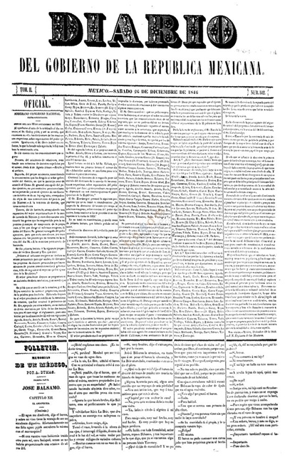 Tras la impresión de algunas gacetas en Nueva España anteriores, a partir de 1728 había iniciado su aparición regular la Gaceta de México, que entre finales de esta centuria y la primera década de la siguiente fue adquiriendo un carácter oficial del Virreinato, habiéndolo quedado completamente establecido cuando se produce la independencia en 1821. A partir de entonces, cada grupo político que alcanzaba el poder en México irá rebautizando el título del periódico oficial del Gobierno al objeto de darle al mismo un significado afín al tipo del nuevo Estado que iba constituyéndose. De tal forma que, tras haber adoptado, incluso, el nombre de El Telégrafo, desde el once de enero de 1833 al nueve de febrero de 1835, al día siguiente adoptó el de Diario del Gobierno de los Estados Unidos Mexicanos, iniciando nueva secuencia, hasta que, desde el seis de octubre de ese año, y hasta el 28 de febrero de 1846, adopta el título Diario del Gobierno de la República Mexicana, manteniendo la secuencia del anterior y la paginación continuada.