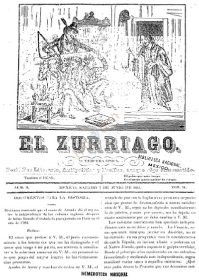 El Mosquito mexicano (c) México: [s.n.[, 1834-1839. T. 1, no. 1-108 (14 mar. 1834 - 24 mar. 1835). T. 2, no. 1-108 (27 mar. 1835 - 5 abr. 1836). T. 3, no. 1-100 (8 abr. 1836 - 21 mar. 1837). T. 4, no. 1-100 (24 mar. - 10 nov. 1837). T. 5, no. 1-3 (13 - 17 nov. 1837). T. 7, no. 44 (4 oct. 1839). (Imp. de Tomás Uribe y Alcalde, 14 mar. 1834 - 24 mar. 1835, 9 jun. 1835 26 ago. 1836, 8 nov. 1836 - 18 sept. 1837; Imp. de José Uribe y Alcalde, 27 mar. - 5 jun. 1835; imp. por Agustín Contreras, 30 ago. - 4 nov. 1836; Imp. De Martín Rivera, 20 sept. - 17 nov. 1837; imp. por Antonio Díaz, 4 oct. 1839). 30 x 20 cm. Prospecto, alcances y suplementos. Inicialmente fue bisemanal, apareció los martes y viernes, sin embargo, el 24 de marzo de 1837 apareció un aviso que advertía que ya no se publicarla el "Alcance al Mosquito, y en su lugar saldrá un número más de este periódico, cuyos días serán lunes, miércoles y viernes, comenzando desde hoy el tomo IV". Lo anterior sirve para enmendar lo anotado por Steven M. Charno sobre la frecuencia inicial de la publicación, pues afirma que aparecía tres veces por semana primero y después, del 17 de abril de 1838 en adelante, dos veces por semana. Cada entrega constó de 4 páginas sin foliar impresas a 2 columnas; no sabemos exactamente cuándo aumentó una columna más, pues en el número 44 del tomo 7 (4 oct. 1839) ya aparecen las páginas impresas a 3 columnas. Como material complementarlo incluyó el prospecto, suplementos y alcances; con respecto a los dos últimos, ocasionalmente llevaban las frases: "Gratis para los suscritores, y de venta para los que no lo son". La dirección de Tomás Uribe y Alcalde era Puente del Correo Mayor número 6; la de José Uribe y Alcalde, calle de Vergara número 10; la de Agustín Contreras, calle de la Palma número 4; la de Martín Rivera, calle primera de Mesones, junto al número 26, y la de Antonio Díaz, calle de las Escalerillas número 7. En la capital la publicación costaba 1 peso mensual y fuera de ella 10 reales, franca de porte. El 20 de septiembre de 1837 el precio cambió a 11 reales para México y 14 para fuera, franca de porte. Originalmente se distribuía en el Portal de Agustinos y en la Alacena de Antonio de Alatorre, posteriormente, ante los cambios de imprenta, las suscripciones pasaron a hacerse en la calle de Mesones número 26. Epígrafe: "Cuando con obstinación se desprecian los fundados clamores de los pueblos y se les despoja de sus más sagrados derechos por medio de la fuerza, no teniendo otro fruto de sus justas reclamaciones, que redoblar los arbitrios del opresor para continuar oprimiéndolos, y sin la más remota esperanza de remedio, no les queda más recurso que repeler la fuerza con la fuerza [...[ Este es el doloroso caso en que nos hallamos" (Aclaración décima tercia del Plan de Veracruz de los generales Santa Anna y Victoria en 1822). El epígrafe cambió en el número 82 del tomo 2 (5 ene. 1836): "Las mejores constituciones de nada sirven, si se quedan escritas en el papel y existen sólo para perpetuar en ridículo a la nación, ¿Qué será pues, del país en donde el abuso se sobrepone a la ley?". Desconocemos cuándo volvió a modificarse el epígrafe, pero en el único número que tenemos del tomo 7 (4 oct. 1839) aparece como sigue: "Pungit, non ledit". Traducción: "Pica, no hiere". Contiene comunicados de Manuel Eduardo de Gorostiza y José Gómez de la Coitiria; también hay textos de "Atilano Rosendo" (seudónimo de José Antonio del Raso y Nava), pero ignoramos si los trabajos aparecidos en la publicación eran contribuciones especiales del autor para la misma. Además, se reprodujeron notas de otros periódicos como El Imparcial, La Lima, El Cosmopolita y Argos, aunque no sabemos con exactitud si este último es la publicación de José María Heredia o se trata de un homónimo. Contiene anuncios sobre venta de víveres, sombreros, publicaciones, renta de casas, baños públicos y servicios profesionales de médicos y dentistas, entre otros. Publicación considerada de tendencia centralista por los estudiosos del periodismo mexicano. Su aparición se debió a que La Lima, periódico estimado por los editores de El Mosquito como el único capaz de informar al pueblo y guiarlo hacia el conocimiento de la verdad, no podía "ocuparse de sus contrarios". Así, El Mosquito se encargaría de "refutar algunos errores que podrían quedarse en silencio”. Teodoro Torres nos dice que tanto La Lima como El Mosquito figuraron entre la prensa oposicionista de carácter satírico; según él, El Mosquito era "virulento y mordaz”. Por su parte, María del Carmen Ruiz Castañeda incluye a esta publicación dentro de los "papeles clericales” que aparecieron en 1834. Luis Reed Torres asienta que, con motivo de la separación de los texanos de la nación mexicana, este periódico afirmó -sin ser jamás desmentido- que Lorenzo de Zavala, Valentín Gómez Farías y José Antonio Mejía "se habían comprometido mediante un pacto secreto en Nueva Orleáns, a ayudar a la rebelión de los texanos". Al respecto cabe destacar que la afirmación a que hace referencia Reed corresponde al documento que publicó El Mosquito, en el tomo 2 número 75, en el que se reproduce el "Plan acordado por la junta Anfictiónica de Nueva Orleáns la noche del 4 de septiembre de 1835, para dar libertad verdadera a los Estados Unidos Mexicanos". Dicho acuerdo también aparece en el tomo 5 de la Historia de la Iglesia en México, de Mariano Cuevas. La firma de este tratado fue considerada por el conservadurismo mexicano como un acto reprobable de los liberales, inclusive el padre Cuevas no sólo retoma lo anotado en el número de El Mosquito a que hicimos referencia, sino que su interés por dar a conocer la existencia del documento lo llevó a investigarlo; para ello viajó -a Estados Unidos y se entrevistó con el dirigente de las logias masónicas en aquel país. Su búsqueda fracasó -s