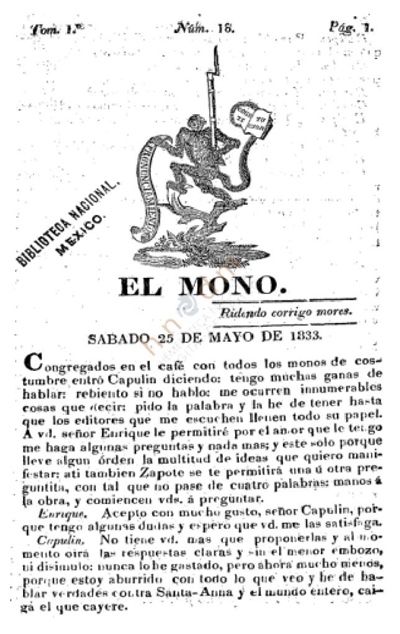 Según Gutiérrez Negrón el semanario mexicano El Mono (febrero 1833-junio 1833) fue un periódico conservador de corta vida que atacó fuerte y consistentemente el gobierno liberal de Valentín Gómez Farías y Antonio López de Santa Anna. A través de los números de la publicación y tomando como punto de partida un modo satírico que tomaron de una novela italiana del 1749 del escritor contra ilustrado Zaccaria Seriman, los editores de El Mono minaron los cimientos conceptuales de la política liberal: la soberanía popular, la opinión pública y la acción política. Al fin y al cabo, para los editores, la política liberal no respondía ni a la lógica ni a la razón, sino a los vicios privados. De modo que sostenían que los únicos basamentos estables para la sociedad debían ser la moral, la tradición y la costumbre. En este trabajo, muestro cómo esta crítica sólo pudo desarrollarse mediante el uso de la sátira juvenil. Es la lógica inmanente de esta forma de sátira que estructura la crítica de El Mono y la cual, como resultado del éxito y efectividad del periódico, pasó a ser integral al discurso conservador posterior en México72.