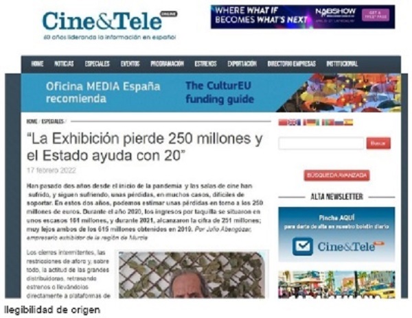 Manifestaciones de Julio Abengózar, empresario exhibidor de la región de Murcia , en relación con la situación actual -a fecha 17 de febrero de 2022- que presenta la industria cinematográfica española en el ámbito de la exhibición.