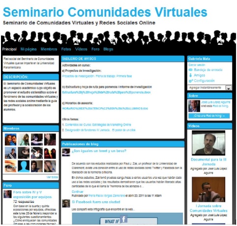 La mayoría de los alumnos termina apropiándose del Seminario. Lo sienten algo suyo, porque con su labor, esfuerzo, ideas, contenidos, aprendizajes e interacciones han logrado que juntos desarrollemos el programa en 18 semanas de intenso trabajo online. De hecho, al final son mis alumnos los que protagonizan, con sus trabajos de investigación, la clausura del Seminario con la celebración de nuestras Jornadas de Comunidades Virtuales.