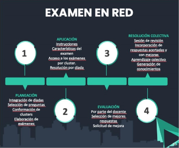 Proceso de aplicación de un examen en díadas, en red y en la nube