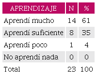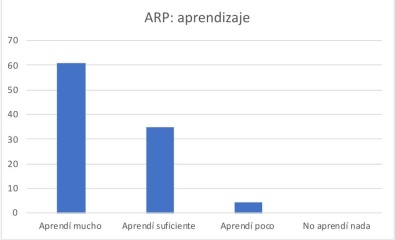 En ambos cursos, la percepción general del aprendizaje es positiva. Para la materia de argumentación, el 96% tuvo una percepción positiva, donde el 61% percibe que “aprendió mucho”. Para la materia de Comunicación Escrita, el 100% de los encuestados afirma que “aprendió mucho”.
