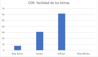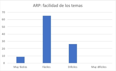 Con respecto a la dificultad de los temas, la mayoría de los alumnos de Argumentación (65%) consideró que los temas eran “fáciles” y, en segundo lugar, para el 26% resultaron “difíciles”. Para el caso de Comunicación Escrita esta relación se invirtió, pues el 62% consideró los temas como “difíciles” y el 31% como “fáciles”. Este resultado se puede deber más a la naturaleza propia de los temas, y no a la estrategia del “Aula invertida”, pues los resultados fueron positivos en todos los demás indicadores. Además, cabe señalar que, si comparamos estos resultados con los anteriores, a pesar de que los temas se indicaron como “difíciles”, el 100% de los alumnos refirió que había aprendido “mucho”.