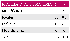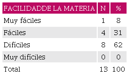 Para esta categoría hubo una relación inversa entre ambas materias mientras que el 65% de los alumnos de la materia de Argumentación percibieron los temas como “fáciles”, al 62% de los alumnos de Comunicación Escrita les parecieron “difíciles”. Esto podría ser causado por la distinta naturaleza del contenido temático de la materia. Aunque es necesario señalar que, a pesar de considerar los temas en su mayoría “difíciles”, el 100% de los alumnos de Comunicación aseguraron que “aprendieron mucho”, como lo indicó la gráfica anterior.