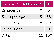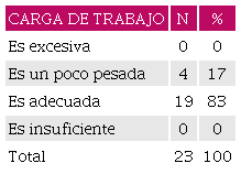 Para el caso de la carga de trabajo, a la mayoría de los alumnos les pareció “adecuada” (83% para Argumentación y 62% para Comunicación Escrita), aunque sí hubo un pequeño porcentaje al que le pareció “un poco pesada” (17% para Argumentación y 38% para Comunicación Escrita). A nadie le pareció que la carga de trabajo fuera “excesiva”.