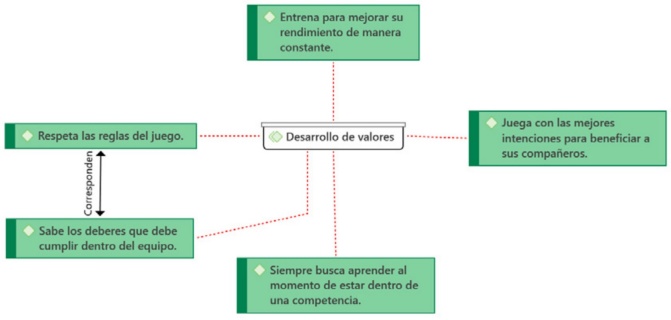 En los esports se desarrolla un conjunto de valores que integran elementos emocionales que fomentan el compañerismo, por lo que la confianza es un factor que incrementa cada vez que se ejerce la interacción. Incluso cuando existen momentos difíciles, como las eliminaciones. Durante la observación un equipo perdió frente a un competidor; sin embargo, no existieron comentarios negativos o actitudes que denotaran que los jugadores no querían seguir jugando. De hecho, una vez terminada la jugado, los integrantes se trasladaron a la red social Discord para hablar del juego. “En general nuestra comunicación es muy buena porque sí nos tenemos suficiente confianza. Cuando alguien comenta alguna inquietud o problema antes del juego, nuestra respuesta siempre es de motivación o de ánimo. Cuando perdemos nunca nos reprochamos, ni nos enfadamos con alguien del equipo” (Edher M. Comunicación personal, 28 de abril de 2022). En la Figura 4 es posible percibir que los valores que se desarrollan durante la dinámica grupal de los jugadores. En este sentido los jugadores en los esports a través de sus comportamientos desarrollan una serie de valores implícitos que van desde la responsabilidad personal, como es el entrenamiento para mejorar el rendimiento, hasta el respeto de reglas y compañerismo.