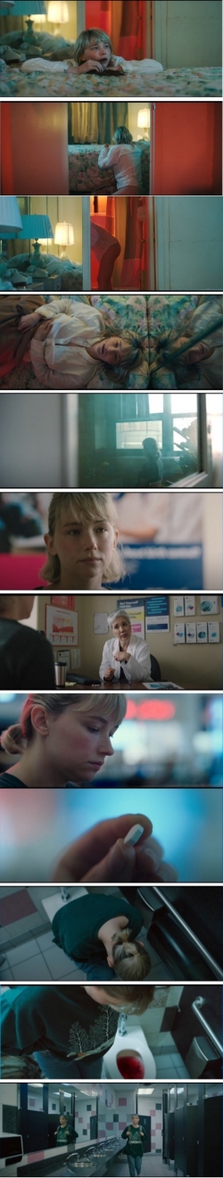 Ese ritual ha simbolizado su nuevo estado como embarazada. Ya ha cumplido con la misión y se tumba tranquila en la cama. A pesar de que el embarazo le recuerda un pasado traumático (es hija de una violación), ella vence sus miedos y se traga la chincheta.