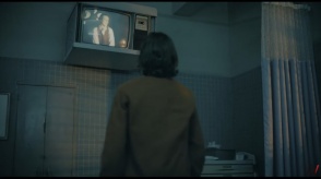 In a scene towards the film’s last act, with his mother undergoing treatment in the hospital room, Arthur watches the “Live with Murray Franklin” show. He suddenly sees himself being telecasted; at first, he is ecstatic (see fig. 9). Murray plays a clip of Arthur’s comedy act to entertain viewers with a snippet meant to be a “comedy fail” (see fig. 10). Murray and the audience laugh at Arthur because of his failed comedic act. At the same time, Arthur watches; his smile slowly turns into a frown, and his dreams are shattered (see fig. 11). For Arthur, this is a rude awakening concerning everything he believes about his idol and father figure in Murray Franklin. Arthur realizes he has been duped all along; he is just another pawn in an endless cycle of consumerism and elitism in the culture industry. This incident dramatically impacts the way Arthur views Murray, the show, and, in essence, society as a whole.