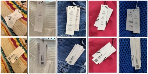 Mostramos a continuación las imágenes de las prendas seleccionadas de forma aleatoria (una por tienda) y sus etiquetas (anverso y reverso): Tablas 19 y 20. Se ha procurado que fueran prendas distintas.