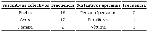 Enseguida, presentamos una tabla en donde recuperamos los sustantivos colectivos y epicenos empleados en las publicaciones.