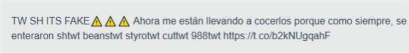 De acuerdo al total de apariciones, le sigue “988*”, un número que representa la línea de prevención del suicidio y otras crisis de salud mental, en Estados Unidos. Esta palabra suele ser mencionada con la abreviación “twt” de Twitter (988twt). Luego sigue “beans*” (usualmente beanstwt, aunque también puede mencionarse solo como “beans”). En la Figura 3 se puede ver un ejemplo de cómo se posicionan estas palabras en un tweet.