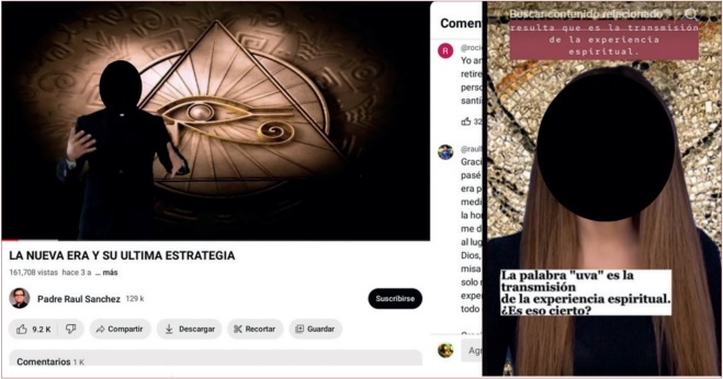 En uno de los comentarios del canal del sacerdote se lee: “Yo anduve en esto, y hace nueve años me retiré de cualquier práctica de new are (sic) y de las personas que ahí conocí… Postrarme ante el santísimo y pedir perdón me liberó”. En la imagen derecha, se lee en un comentario: “Me podría indicar qué pasa con el multiverso, luki y su variante”. La creadora del contenido sugiere “puede ver el programa sobre el mundo espiritual" en allatra.tv, se habla sobre multiversos.