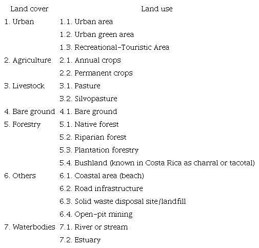 The characterization of potential pollution sources was conducted according to the spatial occurrence and the main types of pollutants generated in each activity, according to the methodology proposed by Foster et al., (2003). This methodology was adapted for Costa Rica following Executive Decree N°33601-MINAE-S (Presidency of the Republic of Costa Rica, 2007) (Table 3).